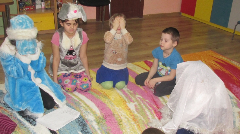 Усилиями воспитанников школьного возраста для малышей развернулось представление, в котором участвовали Снегурочка, Снежная Королева и Зайчик, который поведал свою историю о том, как зимой ему холодно, голодно и страшно. Дети слушали стихи, музыкальные композиции, рассматривали картины о зиме. Также провели веселые игры и хороводы.