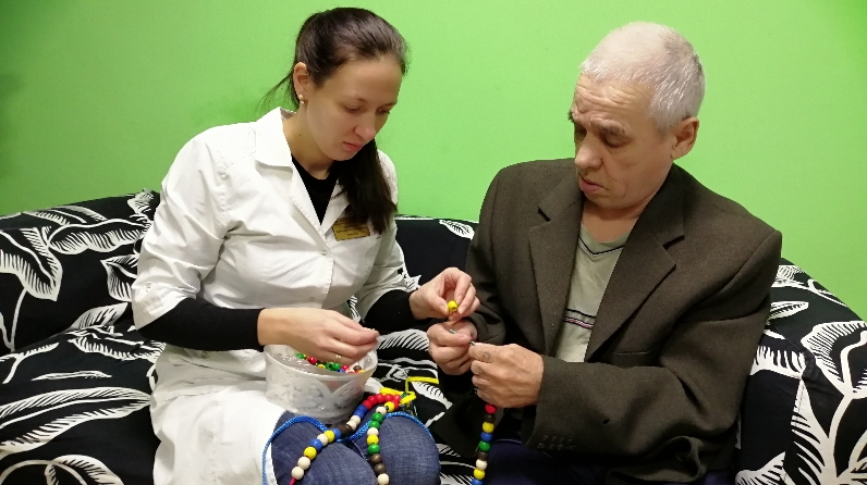 Проживающие дома-интерната в большим интересом занимаются с набором. Его разнообразие позволяет на каждом занятии сочетать новые фигуры, которые можно использовать каждый раз по-разному.