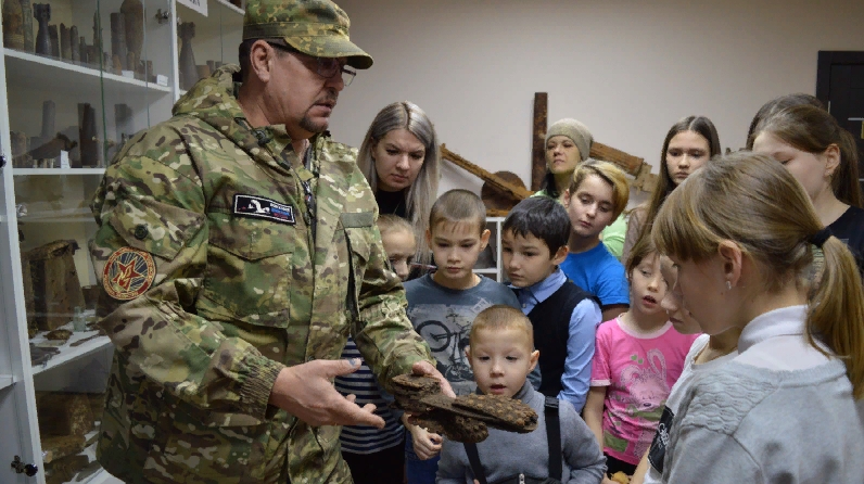 Мероприятие началось с посещения музея клуба, где несовершеннолетние получатели социальных услуг узнали много интересного о событиях Великой Отечественной Войны, о подвиге русского солдата, о мужестве наших прадедов, о героизме и стойкости жителей Ленинграда. Дети с большим интересом слушали руководителя поискового клуба «Гвардия» Никифорова Виктора Михайловича, задавали вопросы, рассматривая экспонаты. Среди них каски, гранаты, фляжки, личные вещи участников войны. Все они подлинные!