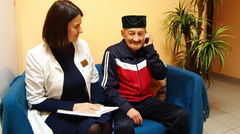 Ривгат Мухтарович с помощью специалиста по социальной работе установил в телефон сим-карту и начал обзванивать своих друзей и, конечно, позвонил Фариду Хайбулловичу со словами благодарности за неожиданный подарок. "Словно попал в студенческие годы, - говорит Ривгат Мухтарович, - сорок лет не общались, было очень приятно. "