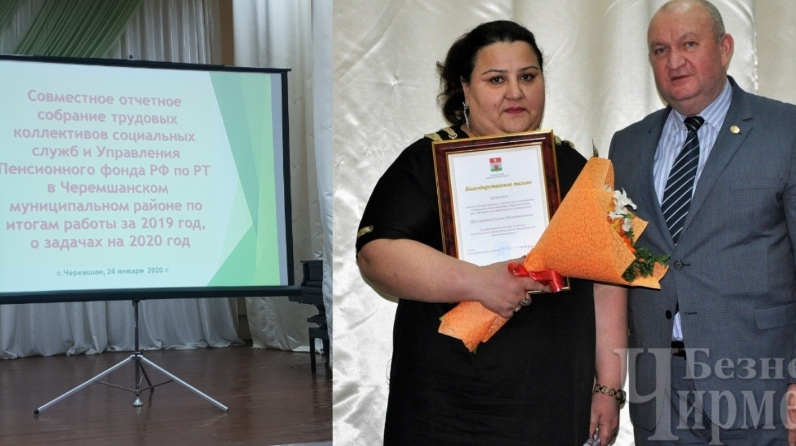 24 января в Черемшанском муниципальном районе прошло совместное собрание трудовых коллективов социальных служб и Управления Пенсионного фонда РФ по РТ в Черемшанском муниципальном районе по итогам работы за 2019 год, о задачах на 2020 год. На собрание были приглашены депутат Государственного Совета РТ шестого созыва Рыбакова Л.Н., глава Черемшанского муниципального района Давлетшин Ф.М., зам главы по социальным вопросам в Черемшанском районе Долгополова Р.Ш. Все руководители социальных служб выступили с итогами работы своих учреждений за 2019 год и ознакомили присутствующих своими задачами на 2020 год.