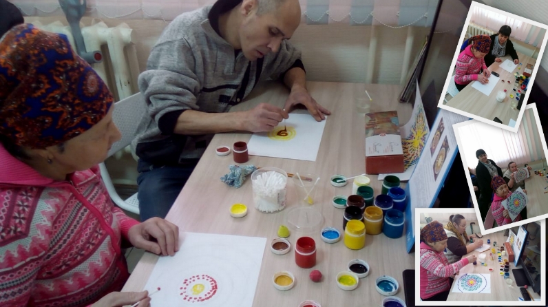 Групповое занятие «Изотерапия», упражнение «Создание Мандал в технике точечного рисования» было подготовлено и проведено психологом ГАУСО «ЦСА «Перекресток» МТЗ и СЗ РТ» г. Набережные Челны Хайрутдиновой Венерой Илдаровной.