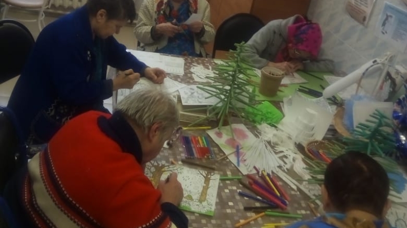 Еженедельно в кабинете трудотерапии работает кружок по интересам «Мастерская добрых дел». На занятиях проживающие мастерят поделки из подручного материала, рисуют, изучают новые техники и просто общаются между собой. Занятия проходят в теплой, домашней обстановке.