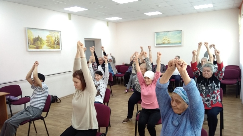 Участники пожилого возраста особо заинтересовались  3-х минутной гигиенической гимнастикой,  с удовольствием повторяли лечебные упражнения за специалистом и выразили свое желание применить гигиеническую гимнастику по утрам.