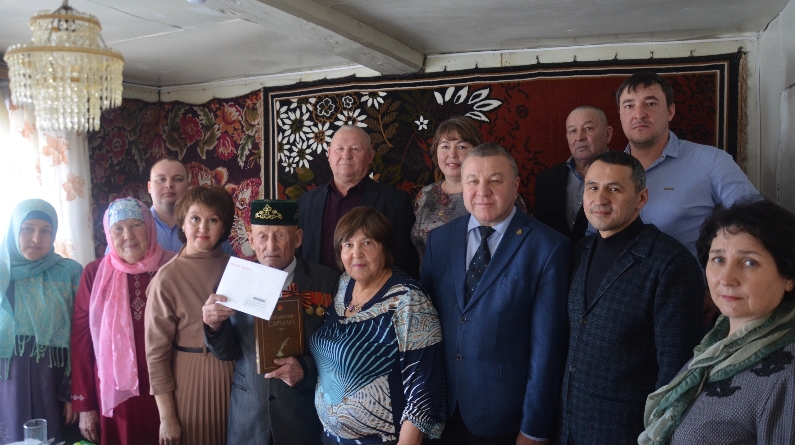 Поздравить юбиляра приехали Глава Сармановского муниципального района Фарит Хуснуллин, начальник отдела социальной защиты населения Лилия Гильмутдинова, директор Центра «Шафкатъ» Гульнара Хузина, председатель Совета ветеранов Назип Миннугулов, руководитель Исполкома сельского поселения Николай Сахуриев. В адрес юбиляра было сказано много тёплых слов. Душевная теплота близких людей прибавила долгожителю сил и желания радоваться каждому мгновению жизни.