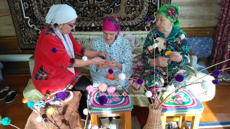 В клубе «Рукодельница» организованном при КЦСОН «Гармония» Нурлатского района прошло очередное занятие по рукоделию. На этот раз руководитель клуба Рахимя Таджибаевна предложила сделать помпоны из шерстяных ниток. Цветные и пушистые помпоны – универсальное украшение для декора и поделок. Ими можно украсить все, что угодно: от одежды до интерьера. Несмотря на то, что делать их достаточно просто, от получателей социальных услуг это потребует определенной сноровки и терпения, развивается мелкая моторика, что так необходимо пожилым людям.