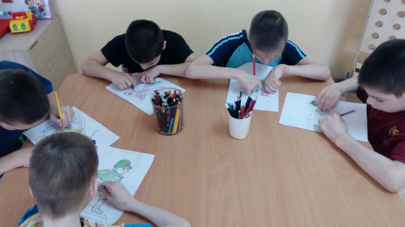 В течении недели в группе проходили различные мероприятии: чтение художественных произведений, рассматривание картин, беседы. И это все помогло детям при раскрашивании картинок. Дети приняли участие в выставке с большим интересом, проявили свои способности. Они раскрашивали солдатиков, пароходы, самолеты, подводные лодки. Все очень старались. Работы получились разные, красивые. Все остались довольными