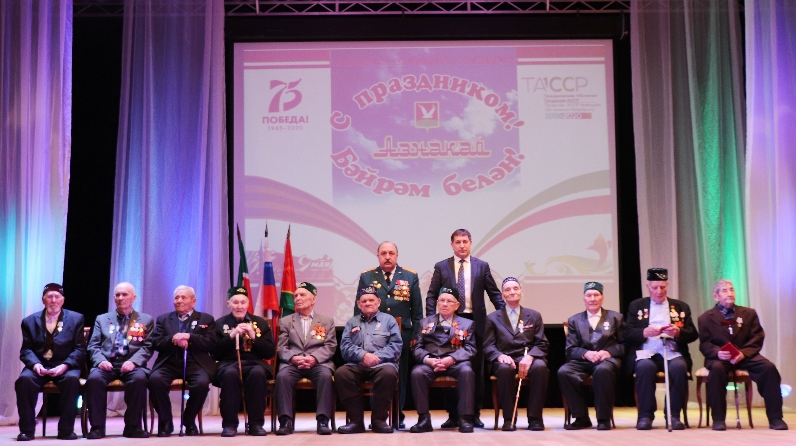 21.02.2020 г. во Дворце культуры г.Азнакаево состоялся торжественное мероприятие, посвященное Дню защитника Отечества. Мероприятие открыл торжественной речью руководитель Исполнительного комитета Азнакаевского муниципального района Шамсутдинов А.Х. На мероприятие были приглашены участники ВОВ, труженики тыла. Им торжественно вручили юбилейные медали «75 лет Победы в Великой Отечественной войне 1941-1945г.г.». Среди них были получатели социальных услуг надомного социального обслуживания: Шайхутдинов Касим Давлетшович, Шакиров Нурулла Шафикович, Фатыхов Талгат Карипович.