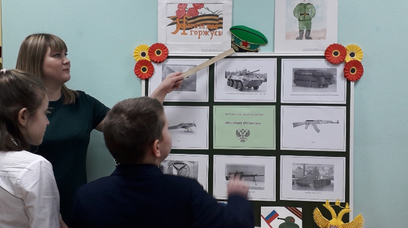 В период прохождения фотовыставки посетители узнали о родах войск, военной технике и оружии времен СССР, а также современных вооруженных сил России. На протяжении всей Великой Отечественной войны победоносный путь советских солдат сопровождало самое массовое и распространённое оружие – стрелковое. Высокие боевые характеристики, простота применения и обслуживания, экономичность и технологичность изготовления были по праву оценены воинами Красной Армии и тружениками оружейной промышленности, которым пришлось осуществлять его бесперебойное производство. Одним из самых мощных боевых машин был танкТ-34- самоходная машина на гусеничном ходу, что позволяло емубеспрепятственно передвигаться по любой местности. Знаменитая ракетная установка «Катюша» крушила врага своими огненными ракетами.