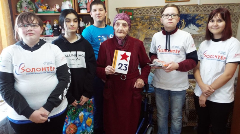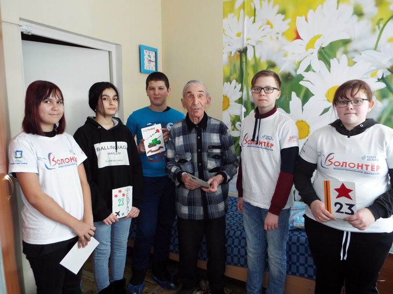 Волонтеры средней школы №3 посетили ветеранов ВОВ и участников боевых действий в Афганистане, проживающих в учреждении и подарили им открытки, сделанные своими руками.