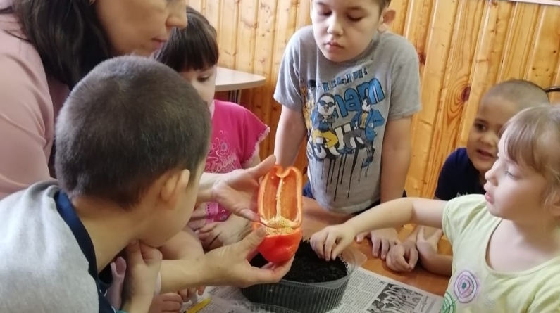 3 недели назад мы посадили семена болгарского перца. Дети узнали, как извлекать семена от плода, научились их сажать. Ежедневно ухаживали и с нетерпеньем ждали их появления. Наконец, сегодня, дети увидели первые всходы.