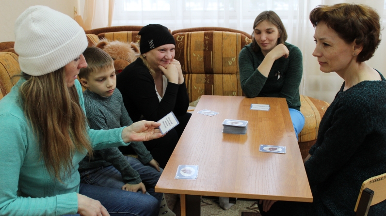 Для перехода на новый осознанный уровень в вопросах взаимоотношений «родитель-ребенок» после проведенного исследования психолог предложила участницам принять участие в игре Гюнтера Хорна «Семейные псикреты». Мамы попытались честно выбрать те утверждения игровых карточек, которые им подходят. С помощью выбранных высказываний в конце игры все участницывыделили для себя круг проблем, которые надо проработать на последующих встречах клуба.