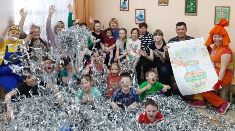 Дети и родители приняли активное участие во всех играх и конкурсах. Совместно была создана большая открытка, украшенная ладошками детей. Праздник завершился дискотекой с Серебряным шоу. Каждый воспитанник получил памятный подарок от благотворителя.