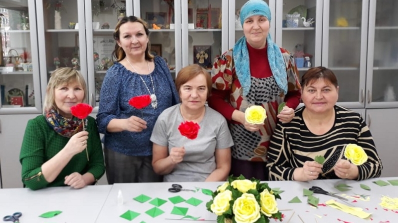 В ЦРИ «Изгелек» г. Набережные Челны специалист по комплексной реабилитации Галия Петрова провела мастер-класс по изготовлению объемного цветка «Роза» из гофрированной бумаги для получателей социальных услуг, приуроченный к празднованию 8 Марта.