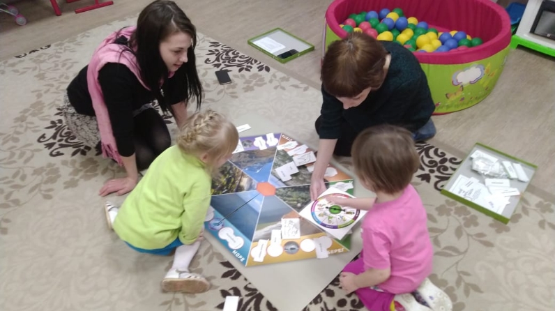 В начале занятия психолог предложила участникам выполнить игру-активатор «Мой дом» (задача участников: по очереди представиться и сказать присутствующим, что должно обязательно присутствовать в их счастливом доме). Далее участники выполнили упражнение «Цветок семьи», которое предполагало собой рисунок и небольшой рассказ о своей семье. Также на занятии была использована психологическая игра «Ксенобиология или жизнь фантастических существ». Участники придумали имена своим фантастическим персонажам и небольшие истории из их жизни. Взрослые и дети заняли свои игровые поля и по очереди проходили все зоны.