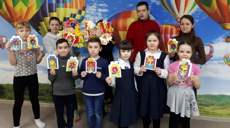 А чтобы присутствующим ребятам было что подарить мамам и бабушкам, специалист предложила изготовить своими руками открытки. Дети с удовольствием принялись за работу и через некоторое время подарок был готов.