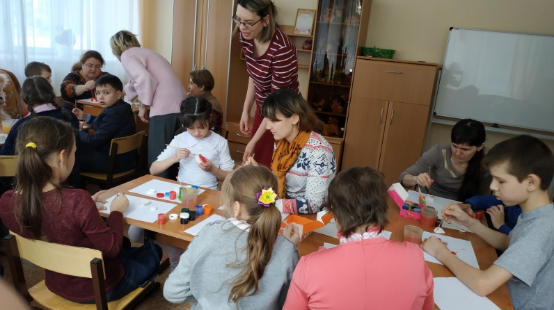 В рамках реализации Комплекса мер по развитию эффективных практик социального сопровождения семей с детьми, нуждающихся в социальной помощи, в Республике Татарстан 04.03.2020 г. в Нижнекамском центре «Веста» в кабинете «Садоводство» специалист по социальной работе Ольга Луб провела мастер-класс «Весенний букет», приуроченный к Международному Женскому дню 8 Марта. В мероприятии участвовали дети с ограниченными возможностями здоровья, состоящими на социальном обслуживании, совместно с родителями. Цель: развитие творческих способностей детей и родителей посредством росписи гипсовой фигуры.