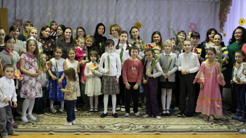 Мероприятие проходило в красочно украшенном зале, где женщин ждала праздничная программа. Мероприятие началось с поздравительных слов в адрес приглашенных женщин и показом видеоклипа. Социальными педагогами был подготовлен необычный весенний букет, состоящий из музыкальных номеров, стихов, веселых игр и поздравлений для мам и бабушек. Они услышали в свой адрес много добрых и нежных слов. Многие женщины были растроганы до слёз.В это время в кабинете труда под чутким руководством инструктора по труду Ларисой Евстратьевойдети изготавливали открытки для мам своими руками.