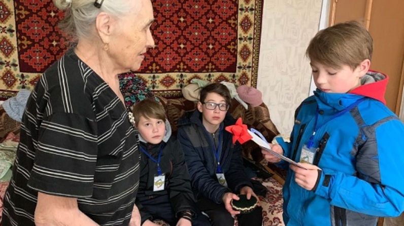 После, в рамках проекта «Воскресный день с ветераном» воспитанники приюта посетили ветерана войны Минхаят Батталову вручили ей подарок и прочитали стихи. Ребята задали Минхаят Фатхутдиновне вопросы, на которые она с удовольствием им ответила. Ветеран рассказала о тяжелых годах войны, о том, что она уже с 8 лет трудилась в колхозе зарабатывая трудодни. Ребята в свою очередь пожелали прекрасной женщине здоровья, счастья и долгих лет жизни. А также в рамках волонтерского движения, ребята предложили ветерану свою помощь в жизненных ситуациях при необходимости. Минхаят Фатхутдиновна осталось под приятным впечатлением от данного визита и предложенной помощи.