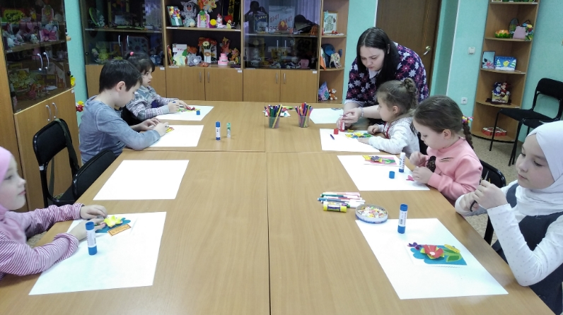 В рамках празднования Международного женского дня 8 Марта и кружковой деятельности «Мир творчества» инструктором по труду Нижнекамского центра «Веста» Ларисой Евстратьевой проведено групповое занятие «Подарок для мамы» среди 10 детей, состоящих на социальном обслуживании. Цель: создание праздничной атмосферы, развитие творческого и художественного мышления, мелкой моторики пальцев рук.