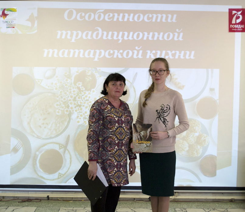 Сотрудники библиотеки рассказали об истории татарской кухни, об интересных и разнообразных блюдах: бэлеш, эчпочмак, кыстыбый и другие, показали видеофильмы. Зрители с интересом слушали и смотрели фильм о выдающемся шеф-поваре Татарстана Ю. Ахметзянове и отвечали на вопросы викторины.
