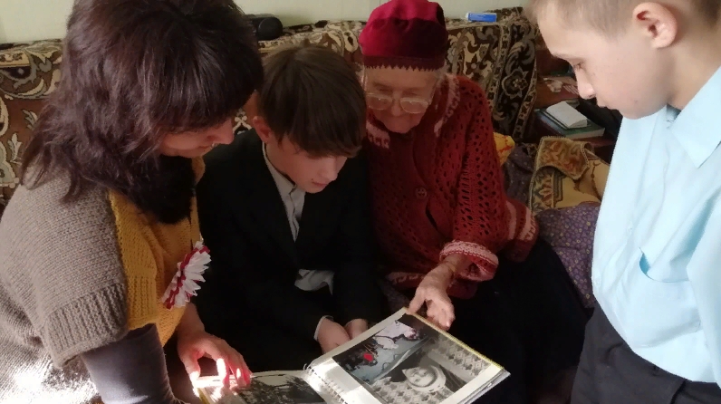 В теплой добродушной обстановке Гандалифа Талиповна поделилась с ребятами о том, как жилось им в непростые военные и послевоенные годы. Попранное войной детство, страдания, голод, смерть рано сделала ребятишек взрослыми, воспитав в них недетскую силу духа, смелость, способность к самопожертвованию, к подвигу во имя Родины, во имя Победы. Она рассказала о своей большой семье, показала фотографии из семейного архива, юбилейные медали и грамоты за неоценимый вклад в победу над фашизмом, за доблестный труд в послевоенное время.
