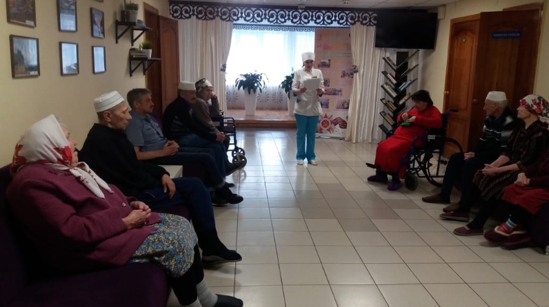 Сегодня палатная медицинская сестра Гузель Абзалова рассказала нашим проживающим, каким образом передаётся вирус и подробное перечисление симптомов и осложнений при заражении.