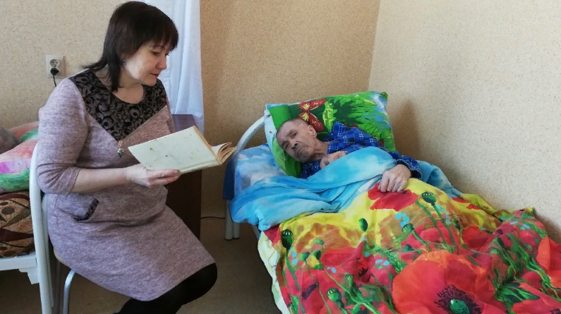 Культорганизатор Лесхозского дома престарелых и инвалидов Мубаракшина Г.Г. провела индивидуальную библиотерапию с лежащими больными. Юмористическая и сатирическая литература, дает возможность более раскрепощено проявить себя в жизненных, сложных ситуациях. Обучает полноценному общению, учит в шутливом тоне вести разговор, тем самым укрепляя уверенность других людей в своих силах. Совместный разбор книги, помогает читающему найти то, что он искал, а также получить ответы на свои вопросы. Библиотекарь должен быть заранее осведомлен и подготовлен к такой беседе, хорошо знаком с той книгой, которая будет разбираться. Им особенно нравятся аудиозаписи стихотворений, слушают с наибольшим вниманием, понимают, что эти стихи они учили ещё в детстве, в школьные годы.
