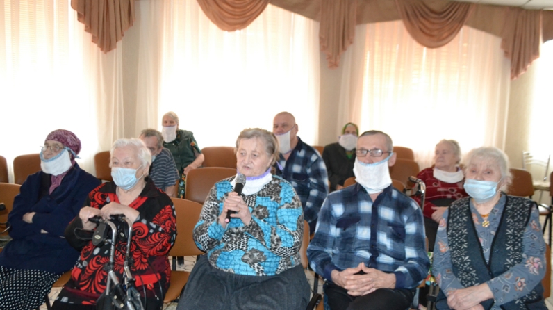В заключение вспомнили ветеранов Великой Отечественной войны, которые жили в доме-интернате: Колдомову Н.Е., Танаеву В.М., Тарасову Е.А., Голышеву О.И. и других.