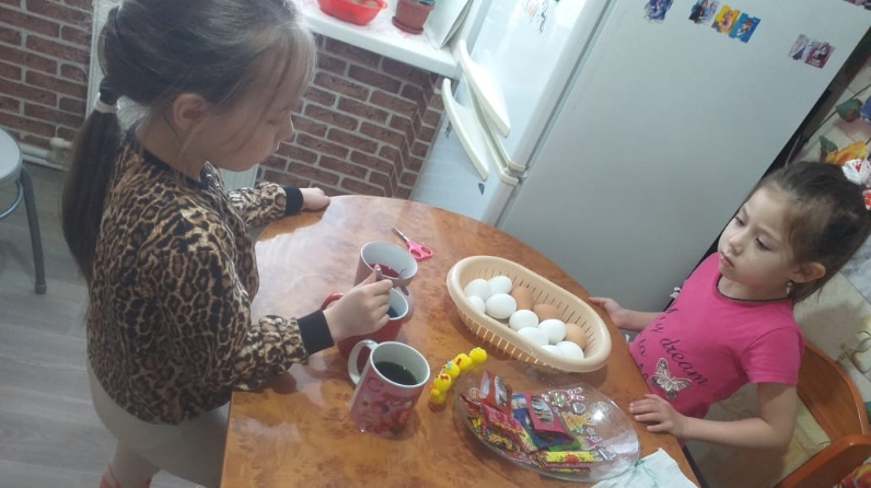 17 апреля 2020 года специалистами Отделения социальной помощи семье и детям при ГАУСО «Комплексный центр социального обслуживания населения «Забота» МТЗ и СЗ РТ в Мамадышском муниципальном районе в рамках плана мероприятий «Десятилетия детства» дистанционно провели занятие на тему «Красим яйца».