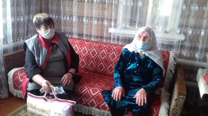 15 апреля 2020 года получатель социальных услуг отделения надомного обслуживания Комплексного центра социального обслуживания населения «Шафкатъ» МТЗ и СЗ РТ в Тукаевском муниципальном районе Габдуллина Зайтуна Мухаметшевна из села Биюрган отметила юбилейную дату, ей исполнилось 80 лет. Социальный работник Мингазова Филига Фарсыевна поздравила юбиляра, соблюдая все установленные ограничения карантина.