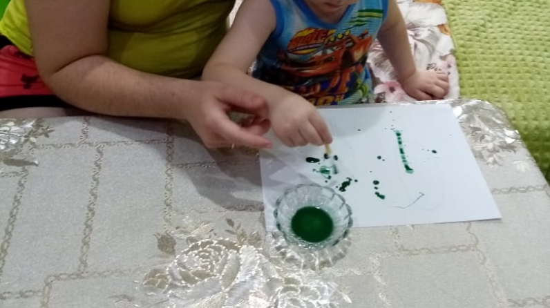 В завершении занятия малыши похвастались своими рисунками в технике каплетерапия. А мамы взяли в свою копилочку интересный способ скрасить время в период самоизоляции.