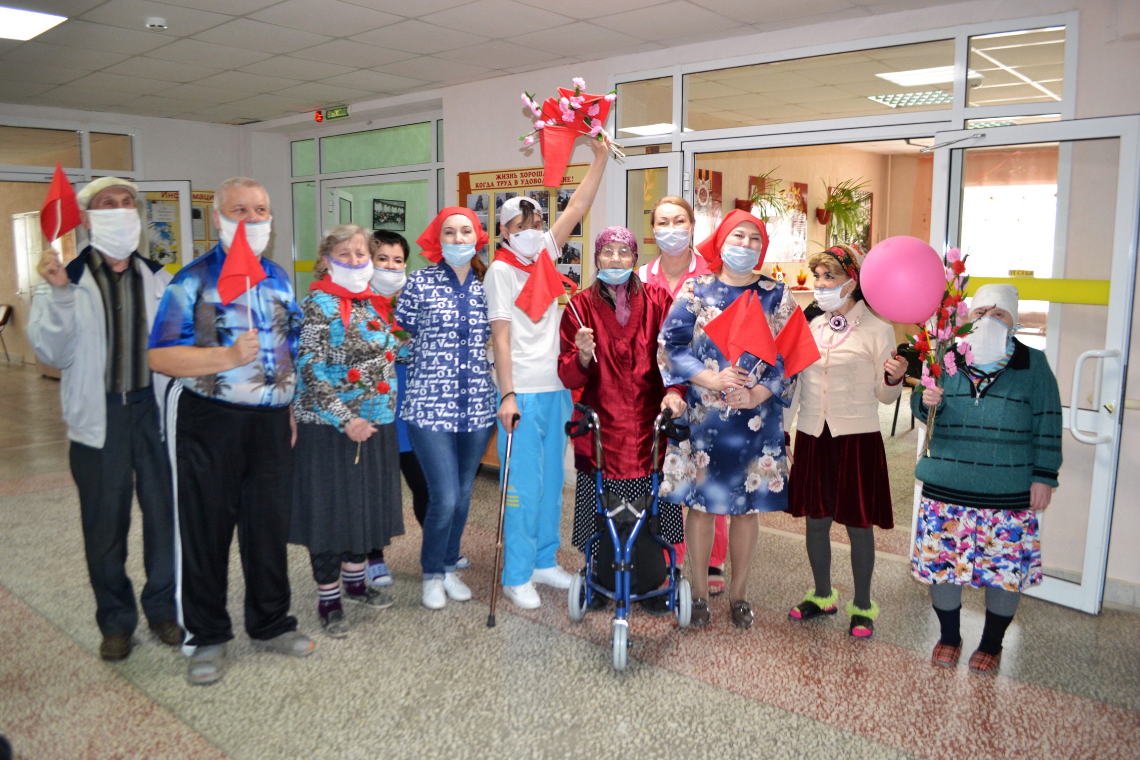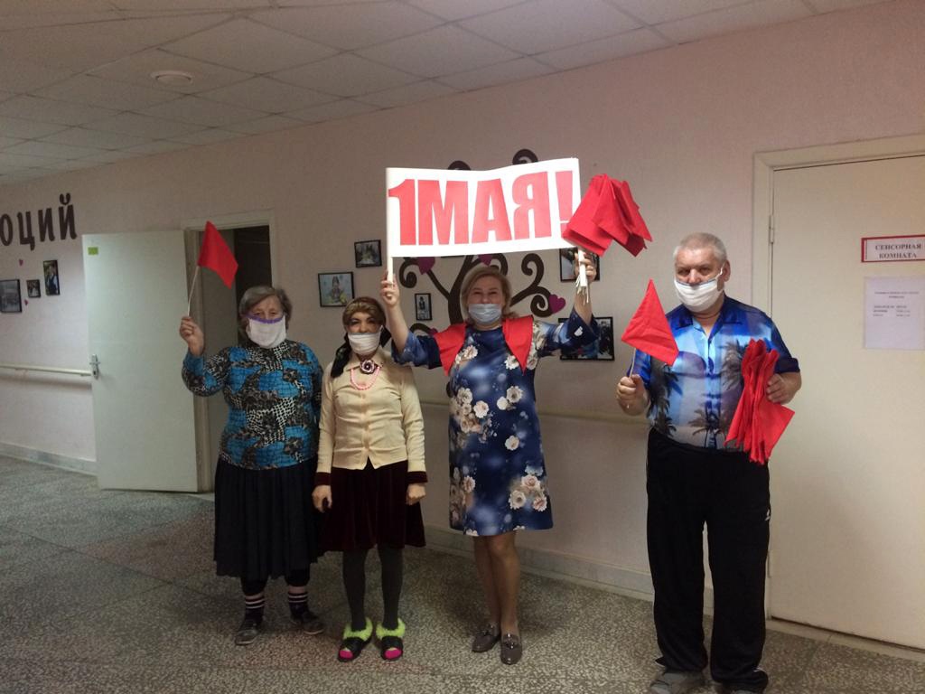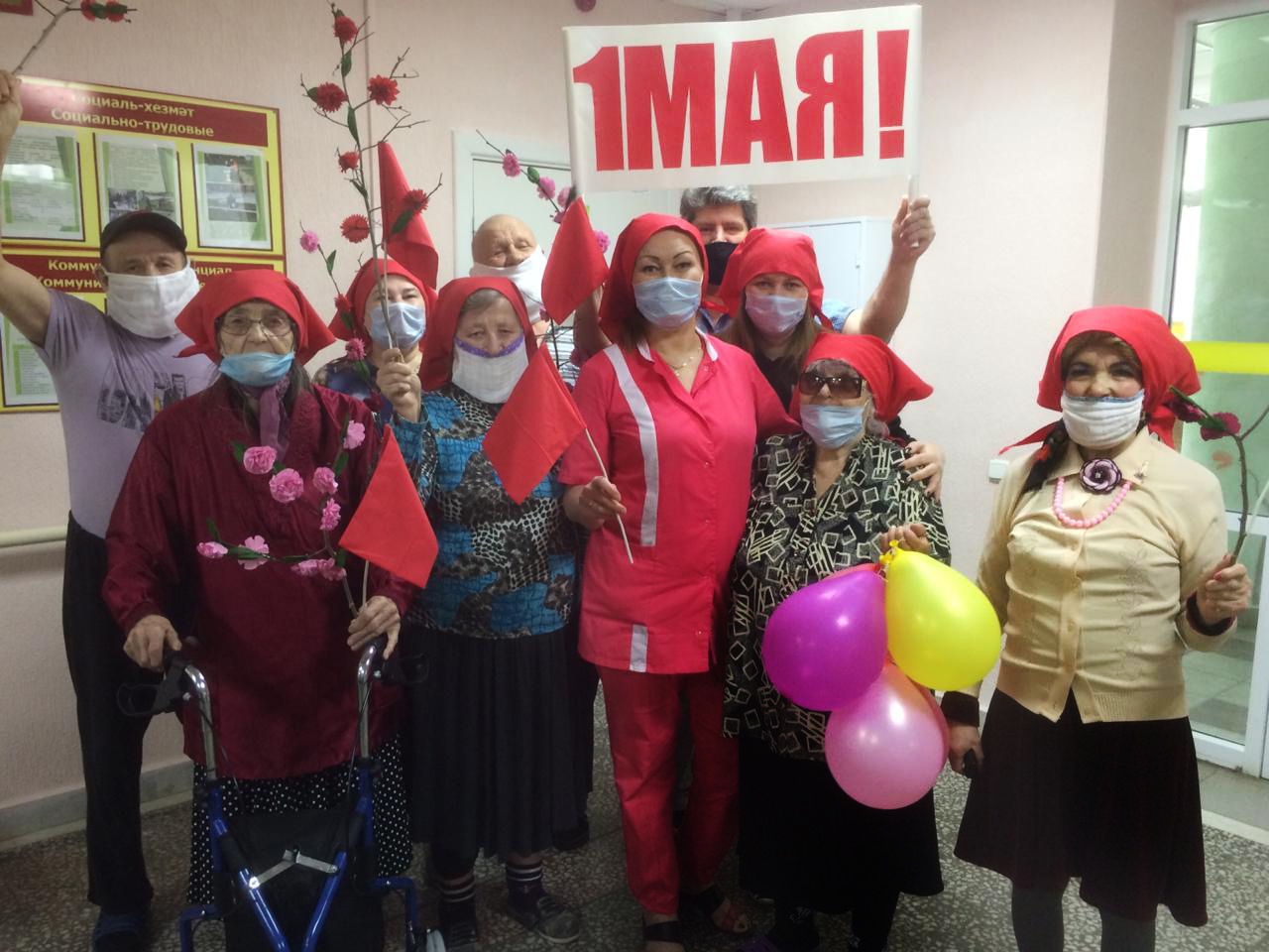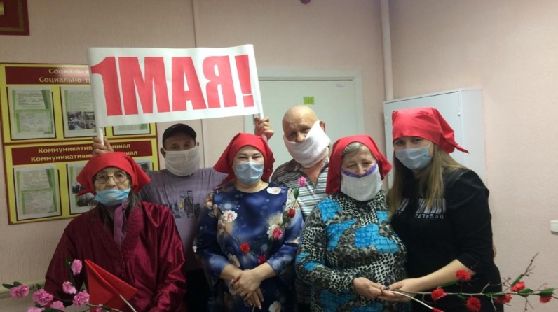 Пожилые люди вместе ведут активный образ жизни, поэтому их предложение провести первомайскую демонстрацию в доме-интернате была с радостью поддержана сотрудниками учреждения.