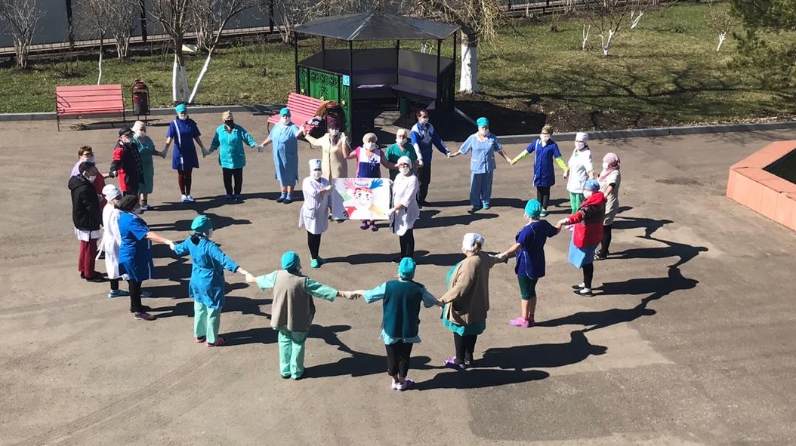 В связи с введением режима самоизоляции с 27 апреля 2020 года получатели социальных услуг и сотрудники Джалильского дома-интерната находятся в стенах учреждения. Самоизоляция – наша новая реальность. И в этот период сотрудники стараются организовать каждый день так, чтобы он прошел с пользой и с интересом. Вот и сегодня придумали лозунг и сделали оригинальное фото в поддержку тех, кто находится на самоизоляции.