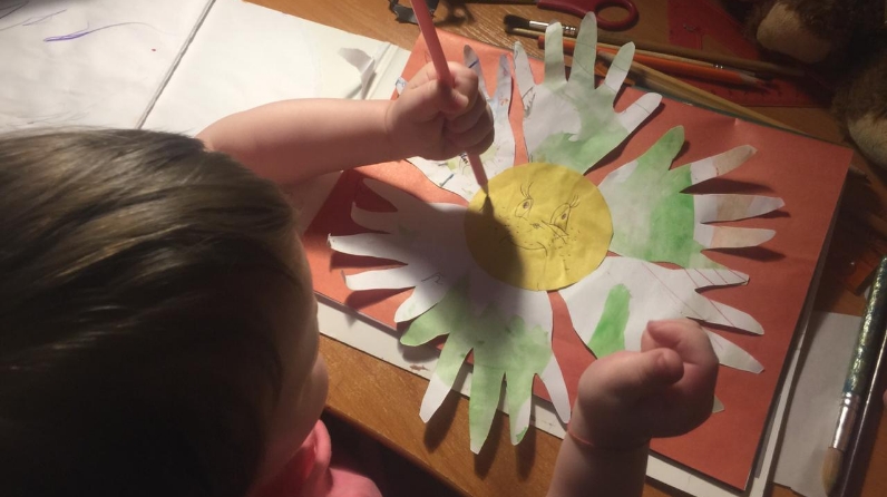 Групповое онлайн занятие «Пусть всегда будет солнце!» прошедшее в клубе «Мама+Малыш» Нижнекамского центра «Веста» было посвящено аппликации. Цель: развитие фантазии, формирование умения вырезать изображения по контуру.