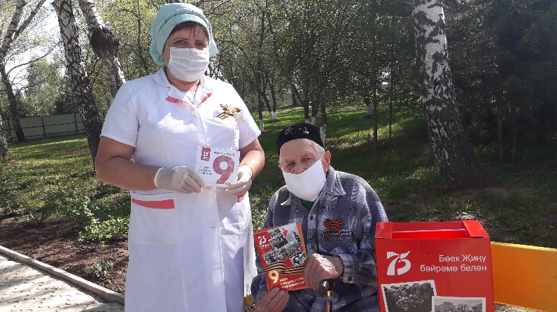 В Мамадышском доме-интернате для престарелых и инвалидов проживает два труженика тыла: Шигабиев Нургали Гайфутдинович и Бариева Минсолу Шигаповна. С этим Великим Днем, с Днем Победы, их поздравили сотрудники учреждения и вручили им открытки и подарки от имени Президента Республики Татарстан Рустама Минниханова и главы Мамадышского муниципального района Анатолий Петровича.