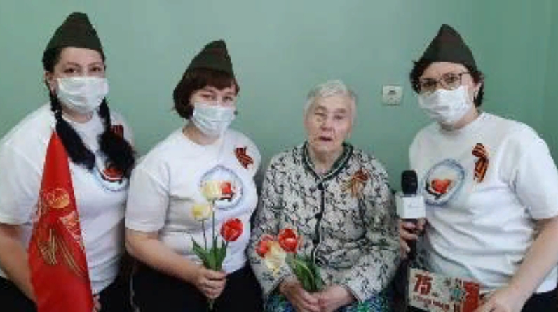 На празднично оформленной территории сотрудники с получателями социальных услуг устроили маленький парад в честь Дня Победы, соблюдая меры безопасности. Исполнили вместе фронтовые песни. Посмотрели онлайн концерты районных домов культур и онлайн поздравления волонтеров, руководителей исполкомов и родственников получателей социальных услуг. Мы благодарим поколение победителей, мы благодарим наших ветеранов за мирное небо над головой, за жизнь наших детей.