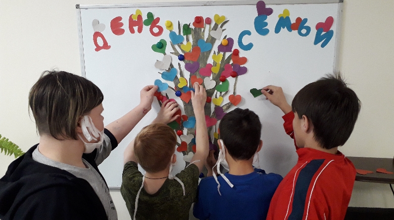 Мальчишкам среднего звена предстояло участие в конкурсе "Передай сердечко", где, передавая сердечко друг другу, нужно было говорить ласковые, добрые слова, которые бы звучали дома в семье, а мальчики постарше участвовали в акции -"Позвони родителям". Мероприятие завершилось изготовлением "Дерева желаний", которое было украшено сердечками с сокровенным пожеланиями детей.
