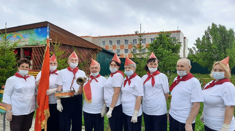 В Верхнеуслонском доме-интернате прошел сегодня слёт совсем не юных пионеров. Непременным атрибутом наравне с пионерским галстуком стали барабаны и символическое знамя пионерской организации, состоящей из жителей и работников интерната. Провели прием в пионеры достойных октябрят, а завершился слёт дружным исполнением любимой песни «Взвейтесь, кострами!!!»