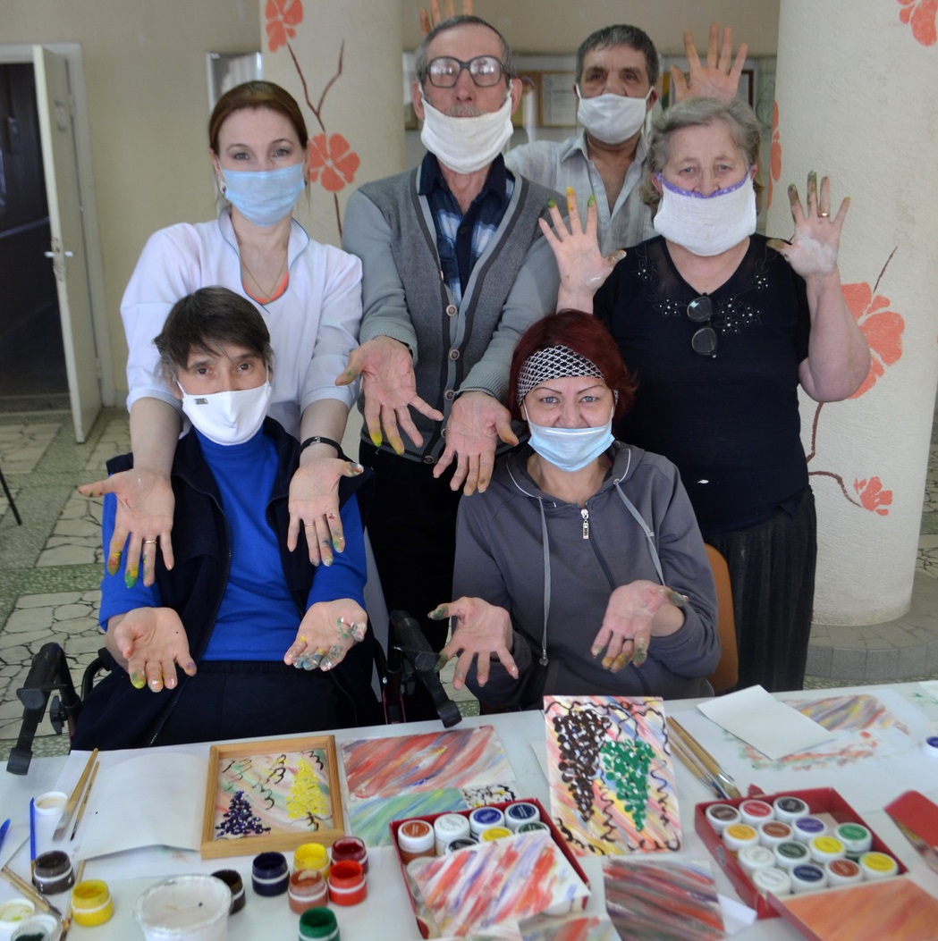 В конце занятия участники дружно поблагодарили свои руки, разрисованные красками, за отличную работу.