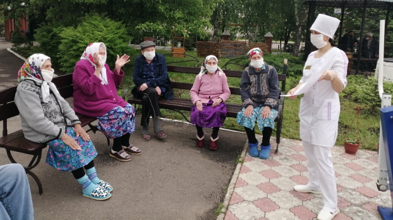 С целью профилактики и борьбы с инфекциями, вызванными короновирусом, в Буинском доме-интернате для престарелых и инвалидов регулярно проводятся профилактические лекции-беседы для получателей социальных услуг. Сегодня прошла очередная беседа, которую провела медицинская сестра Валиева Альфия. Она объяснила получателям социальных услуг о необходимости предпринимаемых мер и правилах поведения и личной гигиены для защиты от короновирусной инфекции.