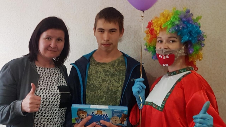 В Международный день защиты детей специалисты отделения социальной помощи семье и детям ГАУСО «КЦСОН «Шафкать» МТЗ и СЗ РТ в Тукаевском муниципальном районе» вместе с Благотворителем - Группы семейных хозяйств Ханова.1 июня 2020 года поздравили в костюме клоунов детей с ОВЗ и инвалидов с третьей степенью ограничения, вручили сладкие подарки и сертификат в магазин "Детский мир". Дети остались очень довольны и сказали, что к ним приехал настоящий клоун.Родители от всей души поблагодарили специалистов и благотворителя и пожелали всем крекого здоровья.