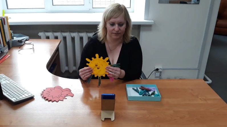 Социальный педагог отделения социальной помощи семье и детям Бугульминского комплексного центра социального обслуживания населения «Радуга» Людмила Голубева с несовершеннолетними получателями социальных услуг отделения провела увлекательное развивающее занятие «Веселые прищепки» по средствам видеосвязи через мобильное приложение WhatsApp. Да, да, тех самых, с помощью которых сушили белье! В работе использовались бельевые прищепки разного цвета и размера. На занятии прищепки «превращались» в различных животных и птиц, помогая развивать мелкую моторику рук дошкольников, закреплять сенсорные навыки и пространственные представления, развивать коммуникативную функцию речи, воображения. Чтобы занятие не было скучным и утомительным, действия с прищепками озвучивались веселыми стихотворными текстами, игровыми приемами. Также применялись прищепки в разыгрывании сценок. Занятие получилось увлекательное, и как выяснилось очень полезное!