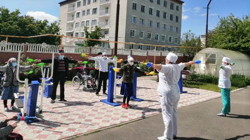 Каждое утро в Буинском доме-интернате для престарелых и инвалидов проводится утренняя зарядка. Утренняя гимнастика подходит для людей любого возраста и уровня физической подготовки, поэтому это вид активности, наиболее подходящий для наших подопечных. Утреннюю зарядку делают все желающие.