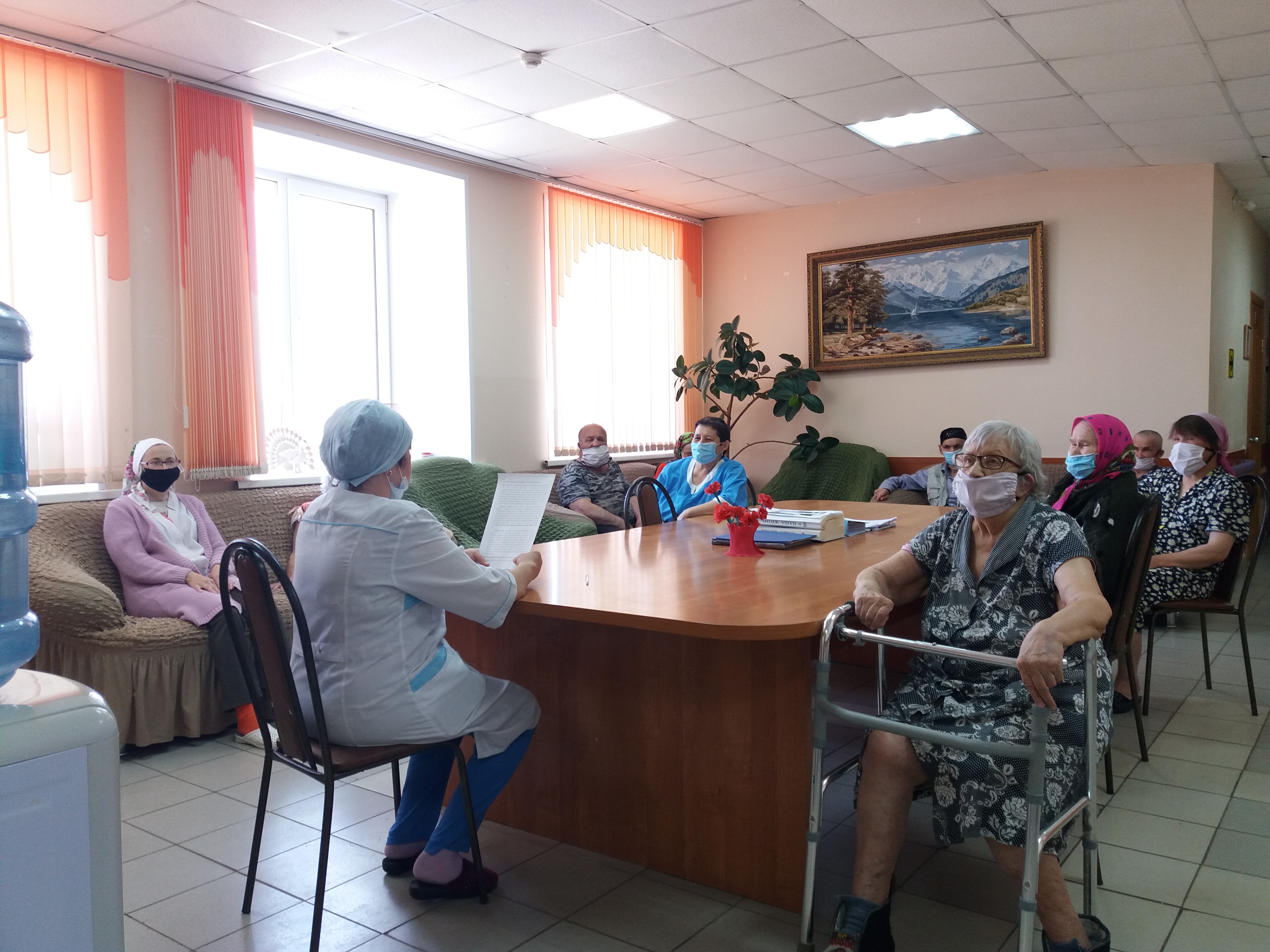ГАУСО «Тукаевский дом- интернат для престарелых и инвалидов» МТЗ и СЗ РТ. Беседа на тему «Солнечный удар: симптомы и профилактика».