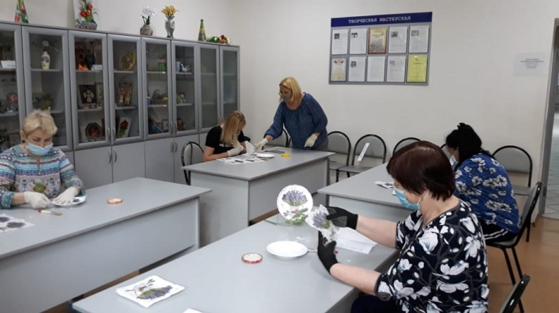 В ходе работы специалист продемонстрировала готовые изделия, выполненные в технике «Декупаж». Участникам на занятии были представлены варианты использования данной техники на различных поверхностях по форме и составу основы. При изготовлении изделия участники получили новые знания, умения и навыки. В процессе творческой деятельности получатели социальных услуг сделали красивую тарелку.