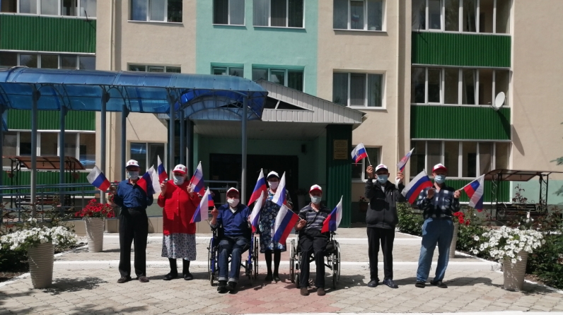 В Буинском доме-интернате для престарелых и инвалидов прошел ряд мероприятий, посвященных Дню России. С получателями социальных услуг была проведена викторина, на которой вспоминали историю праздника, отвечали на вопросы и участвовали в конкурсах, отгадывали сканворд на патриотическую тему, а наша получательница социальных услуг Курбанова Татьяна нарисовала на окне флаг России. Ну и конечно же наш праздник в режиме изоляции не обошелся без флеш-моба.