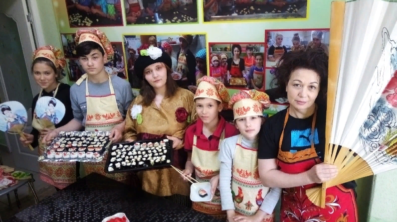 В рамках кружка «Вкусные истории» воспитанники приюта «Ялкын» под руководством педагога Шайхуллиной Наили решили освоить модное блюдо - роллы. Суши пользуются популярностью в разных странах мира. Как известно, это блюдо придумали в Японии, здесь его едят с раннего детства. Но в России свежую рыбу часто заменяют любимыми овощами, креветками, сыром, мясом краба, что и сделали наши участники. Ребята подошли к мастер-классу творчески: оформили кухню в южном стиле, включили музыку страны восходящего солнца, даже не забыли про этническую одежду и освоили весь процесс приготовления от начала до конца. А в конце - красиво накрыли столы и позвали всех ребят на угощение.