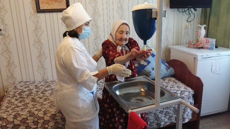 Сегодня в Буинском доме - интернате для престарелых и инвалидов палатная медицинская сестра Миляуша Юсупова провела индивидуальные занятия с получателями социальных услуг, о том как важно соблюдать простые правила личной гигиены.