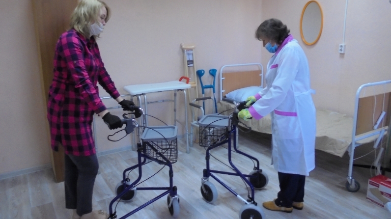 Для эффективного обучения важно оснастить кабинет наглядным специальным оборудованием. Для этого были приобретены: кровать медицинская функциональная трех секционная, адаптированная для лежачего больного; противо пролежневый матрац; ходунки; костыли; кресло-туалет; лестница веревочная для подъема путем перебирания ступенек; вспомогательный пояс для перемещения; доска для пересаживания; сиденье для ванн; роллатор (с колесами на всех опорах).